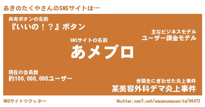 | 男性向けラノベタイトル風あだ名 | 『アキノタクヤアートオンライン』 |