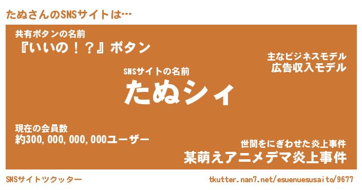 ファンタジー風あだ名 | 『タヌフェル』『エターナルタヌー』 |