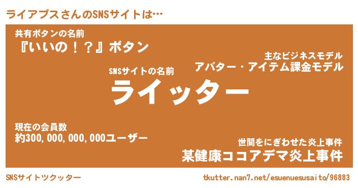 | 男性向けラノベタイトル風あだ名 | 『ライアプスアートオンライン』 |