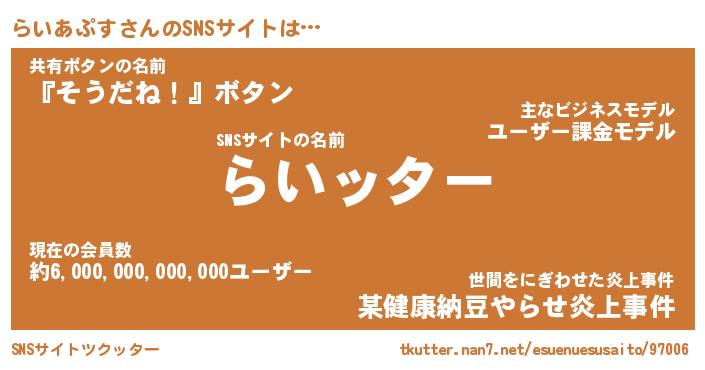| 胡散臭い通販商品みたいなあだ名 | 『億万長者になれる霊験あらたかなお札…その名も「らいあぷす」』 |