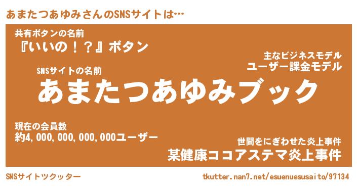 | 肩書あだ名 | 『あまたつあゆみ社長』 |