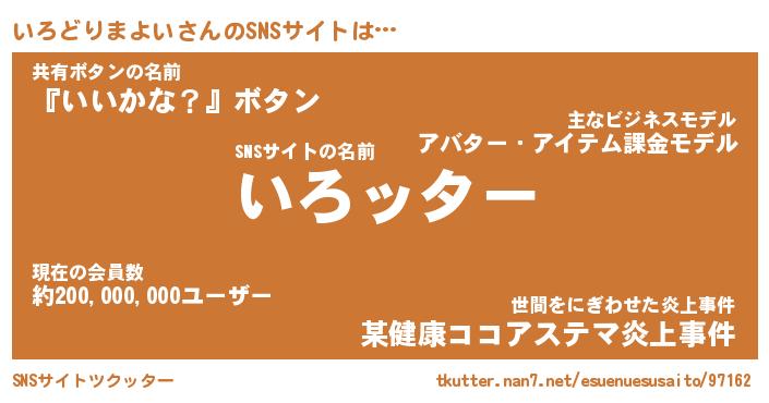 | 胡散臭い通販商品みたいなあだ名 | 『億万長者になれるブレスレット…その名も「いろどりまよい」』 |