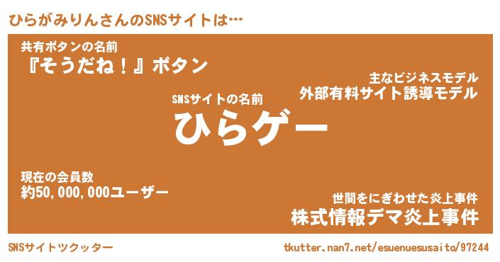 | 胡散臭い通販商品みたいなあだ名 | 『必ず成功するブレスレット…その名も「ひらがみりん」』 |