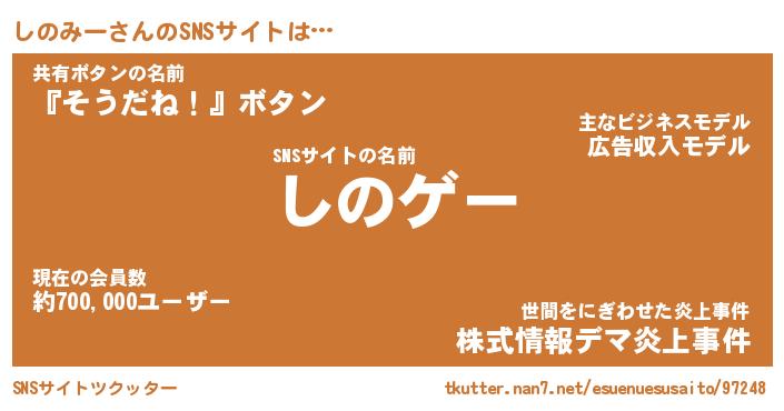 | 肩書あだ名 | 『しのみーCEO』『しのみー国家主席』 |