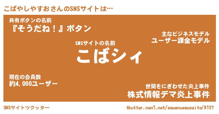 | 肩書あだ名 | 『こばやしやすお店長』 |