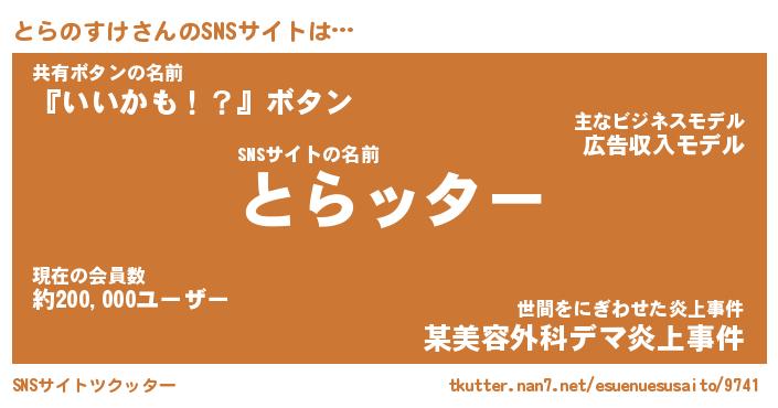 | 胡散臭い通販商品みたいなあだ名 | 『億万長者になれる霊験あらたかなお札…その名も「とらのすけ」』 |