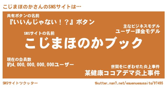 | 胡散臭い通販商品みたいなあだ名 | 『億万長者になれるブレスレット…その名も「こじまほのか」』 |