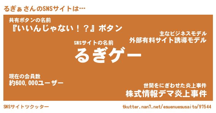 | 肩書あだ名 | 『るぎぁ店長』『るぎぁ総理大臣』 |
