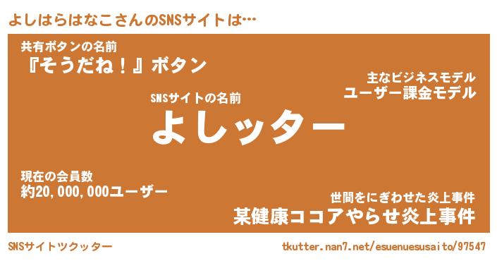 | 胡散臭い通販商品みたいなあだ名 | 『億万長者になれるブレスレット…その名も「よしはらはなこ」』 |