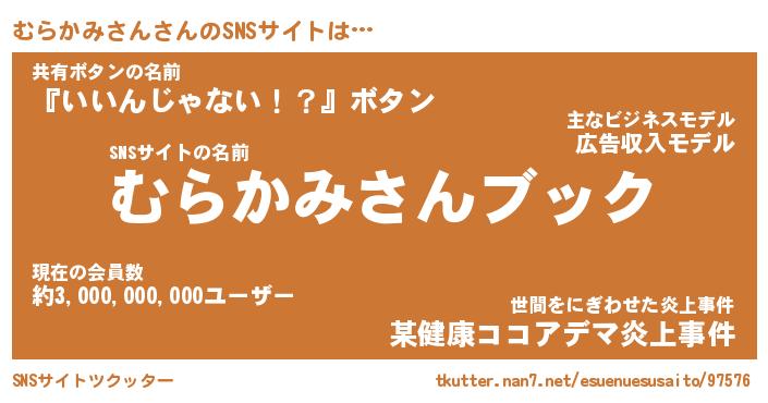 | 胡散臭い通販商品みたいなあだ名 | 『億万長者になれる霊験あらたかなお札…その名も「むらかみさん」』 |
