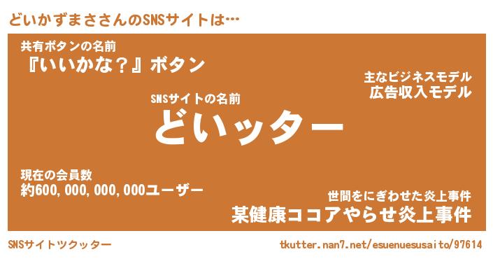 | 肩書あだ名 | 『どいかずまさ店長』『どいかずまさ班長』 |