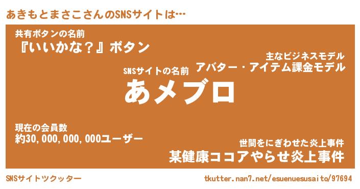 | 男性向けラノベタイトル風あだ名 | 『アキモトマサコアートオンライン』 |