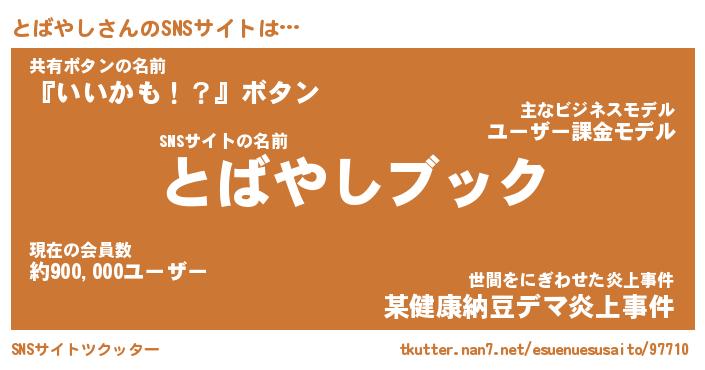 | ポケモン風あだ名 | 『トバチュウ』『トバヤダネ』 |