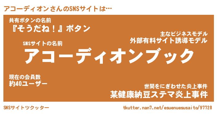 | 男性向けラノベタイトル風あだ名 | 『アコーディオンアートオンライン』 |