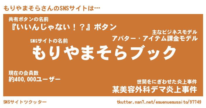 | 胡散臭い通販商品みたいなあだ名 | 『億万長者になれるブレスレット…その名も「もりやまそら」』 |