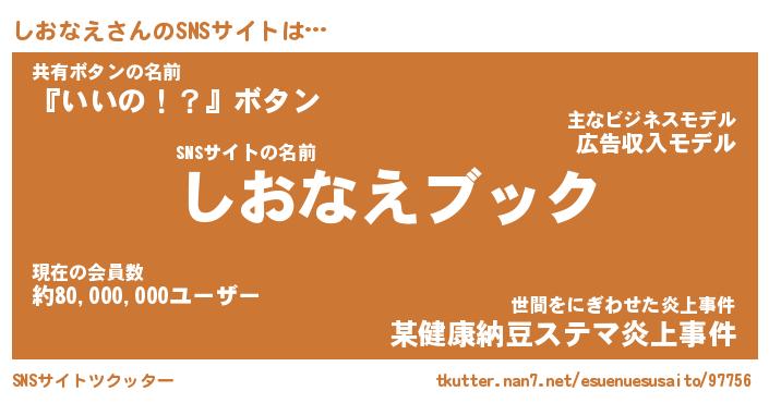 | 意味不明あだ名 | 『ペロリンしおなえ』『永久保存しおなえ』 |