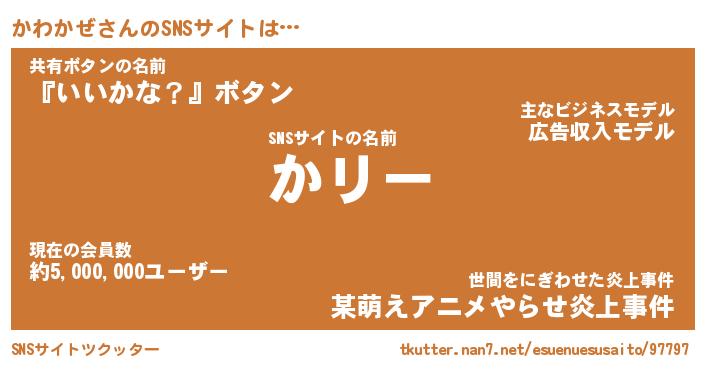 | 意味不明あだ名 | 『ペロリンかわかぜ』『永久保存かわかぜ』 |