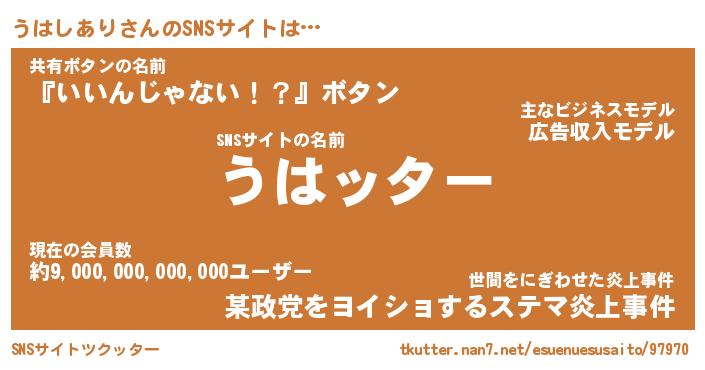 | 肩書あだ名 | 『うはしあり社長』『うはしあり総理大臣』 |