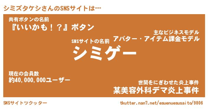 | 欧米人風あだ名 | 『マイケルシミズタケシ』 |