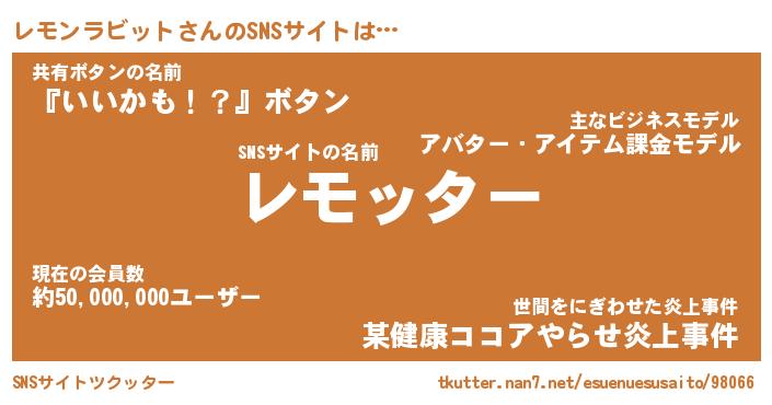 | 男性向けラノベタイトル風あだ名 | 『レモンラビットアートオンライン』 |