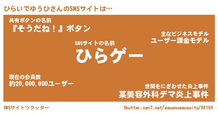 | ヘコむあだ名 | 『ひらもー』『つくし』『ひらぷりん』 |