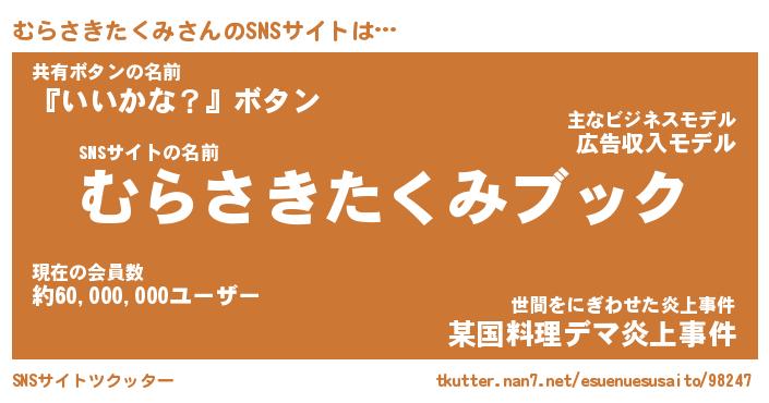 | 欧米人風あだ名 | 『マイケルむらさきたくみ』 |