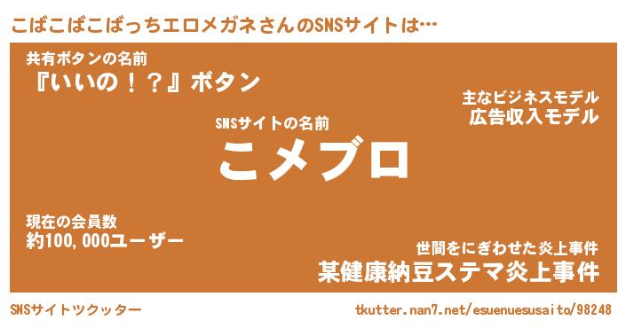 | 女子向けラノベタイトル風あだ名 | 『こばこばこばっちエロメガネ姫と円卓の騎士』 |
