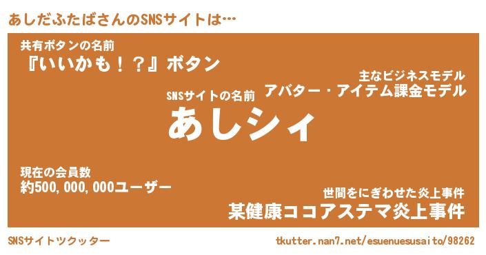 | 胡散臭い通販商品みたいなあだ名 | 『必ず成功するブレスレット…その名も「あしだふたば」』 |
