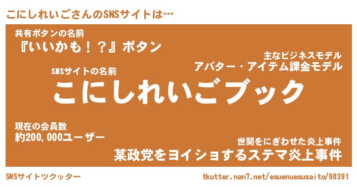 | 胡散臭い通販商品みたいなあだ名 | 『億万長者になれる水晶球…その名も「こにしれいご」』 |