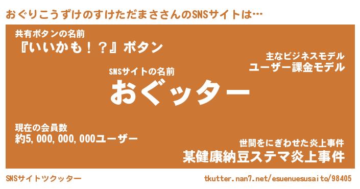 | 欧米人風あだ名 | 『マイケルおぐりこうずけのすけただまさ』 |