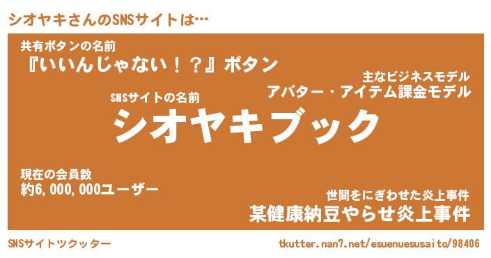 | 男性向けラノベタイトル風あだ名 | 『シオヤキアートオンライン』 |