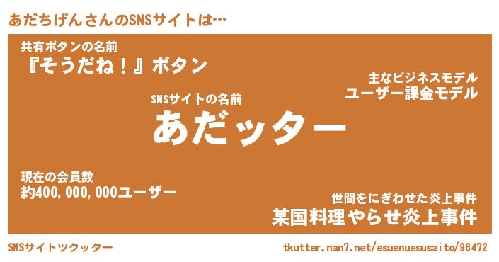 | 肩書あだ名 | 『あだちげん御曹司』『あだちげん塾長』 |