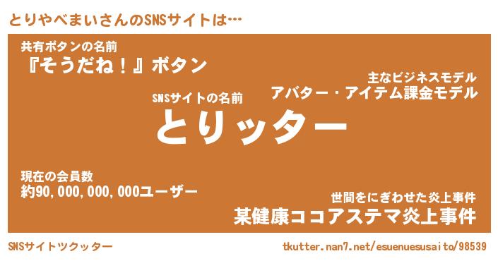 | 肩書あだ名 | 『とりやべまい社長』 |