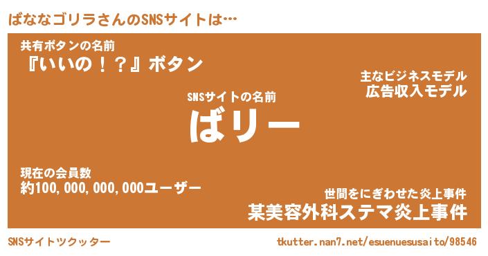 | 胡散臭い通販商品みたいなあだ名 | 『モテモテ間違いなし水晶球…その名も「ばななゴリラ」』 |