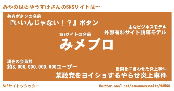 | ヘコむあだ名 | 『みやにー』『なまこ酢』『みや太郎』 |