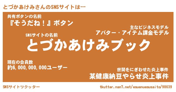 | 肩書あだ名 | 『とづかあけみ御曹司』 |
