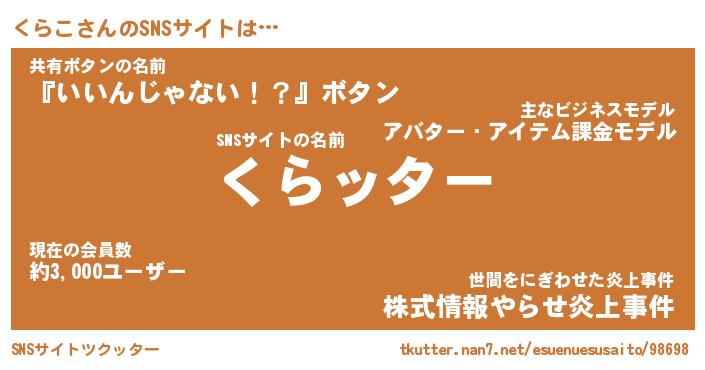 | 胡散臭い通販商品みたいなあだ名 | 『億万長者になれるブレスレット…その名も「くらこ」』 |