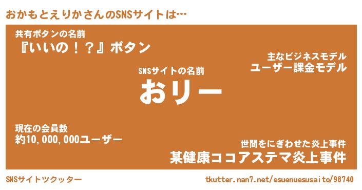 | 男性向けラノベタイトル風あだ名 | 『おかもとえりかの憂鬱』 |