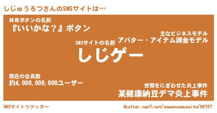 | 伝説のあだ名 | 『伝説のスナイパーしじゅうろつ』 |