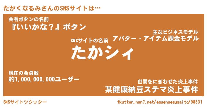 | ポケモン風あだ名 | 『タカチュウ』『タカクダネ』 |