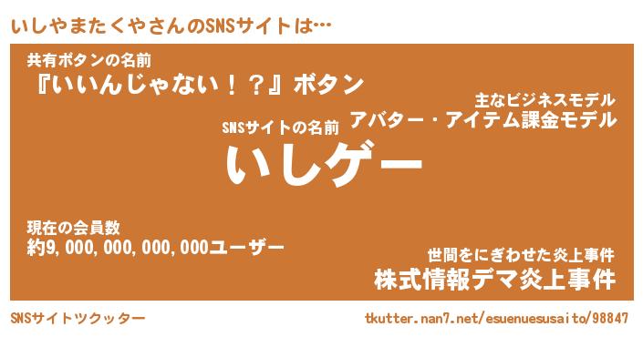 | ヘコむあだ名 | 『いしもー』『牛乳』『いしぷりん』 |
