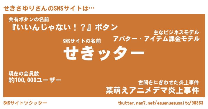 | 伝説のあだ名 | 『封印されしスナイパーせきさゆり』 |