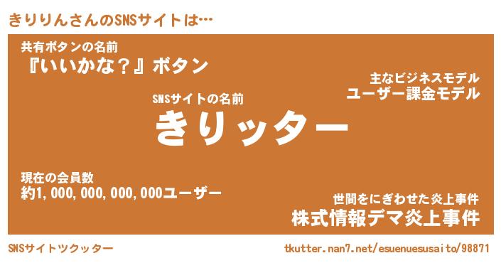 | 胡散臭い通販商品みたいなあだ名 | 『億万長者になれる霊験あらたかなお札…その名も「きりりん」』 |