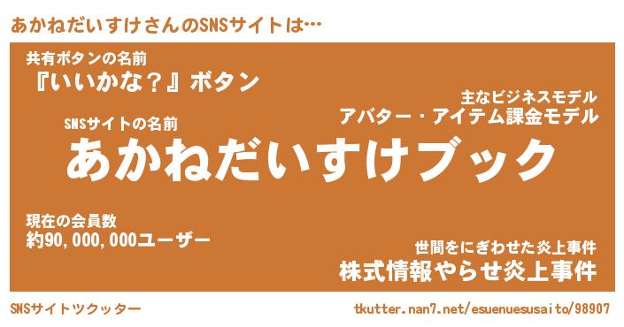 | 欧米人風あだ名 | 『マイケルあかねだいすけ』 |