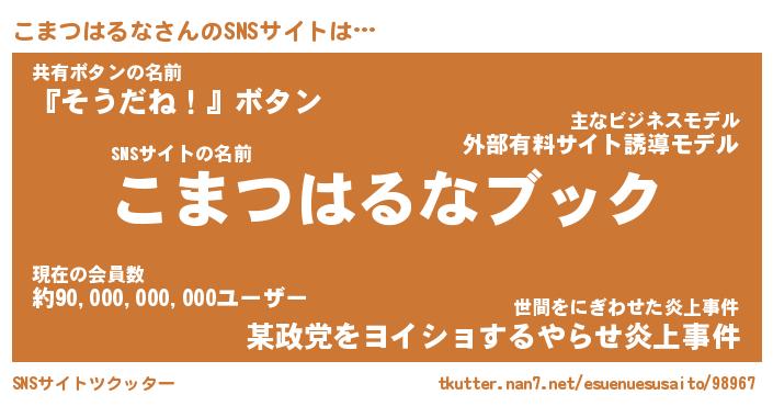 | 胡散臭い通販商品みたいなあだ名 | 『億万長者になれる霊験あらたかなお札…その名も「こまつはるな」』 |
