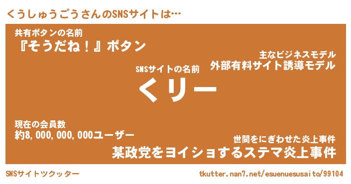 | 草はえルンゴwww …「ツクッター」 | 12月29日 07:12 |