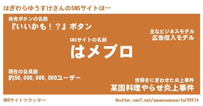 | 胡散臭い通販商品みたいなあだ名 | 『モテモテ間違いなしブレスレット…その名も「はぎわらゆうすけ」』 |