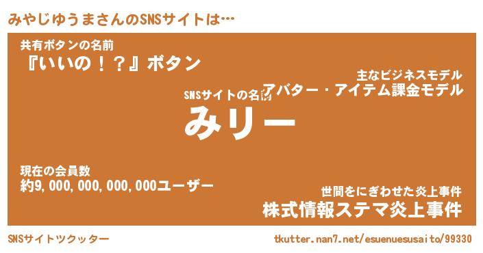 | 胡散臭い通販商品みたいなあだ名 | 『モテモテ間違いなし霊験あらたかなお札…その名も「みやじゆうま」』 |