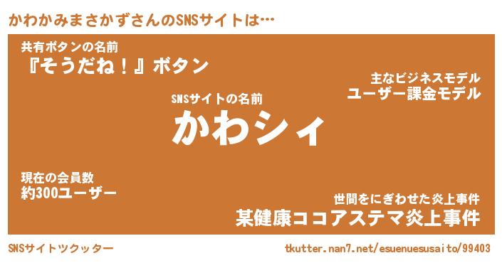 | 胡散臭い通販商品みたいなあだ名 | 『必ず成功する水晶球…その名も「かわかみまさかず」』 |