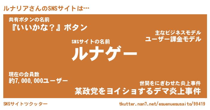 | 意味不明あだ名 | 『ペロリンルナリア』『永久保存ルナリア』 |